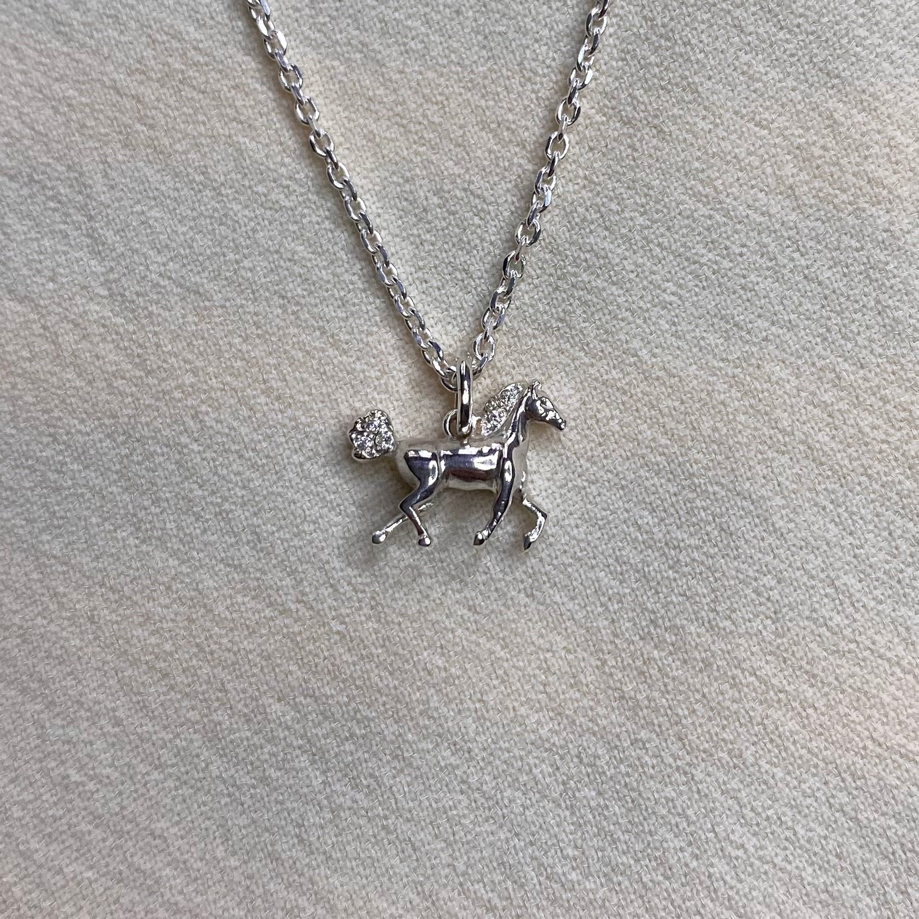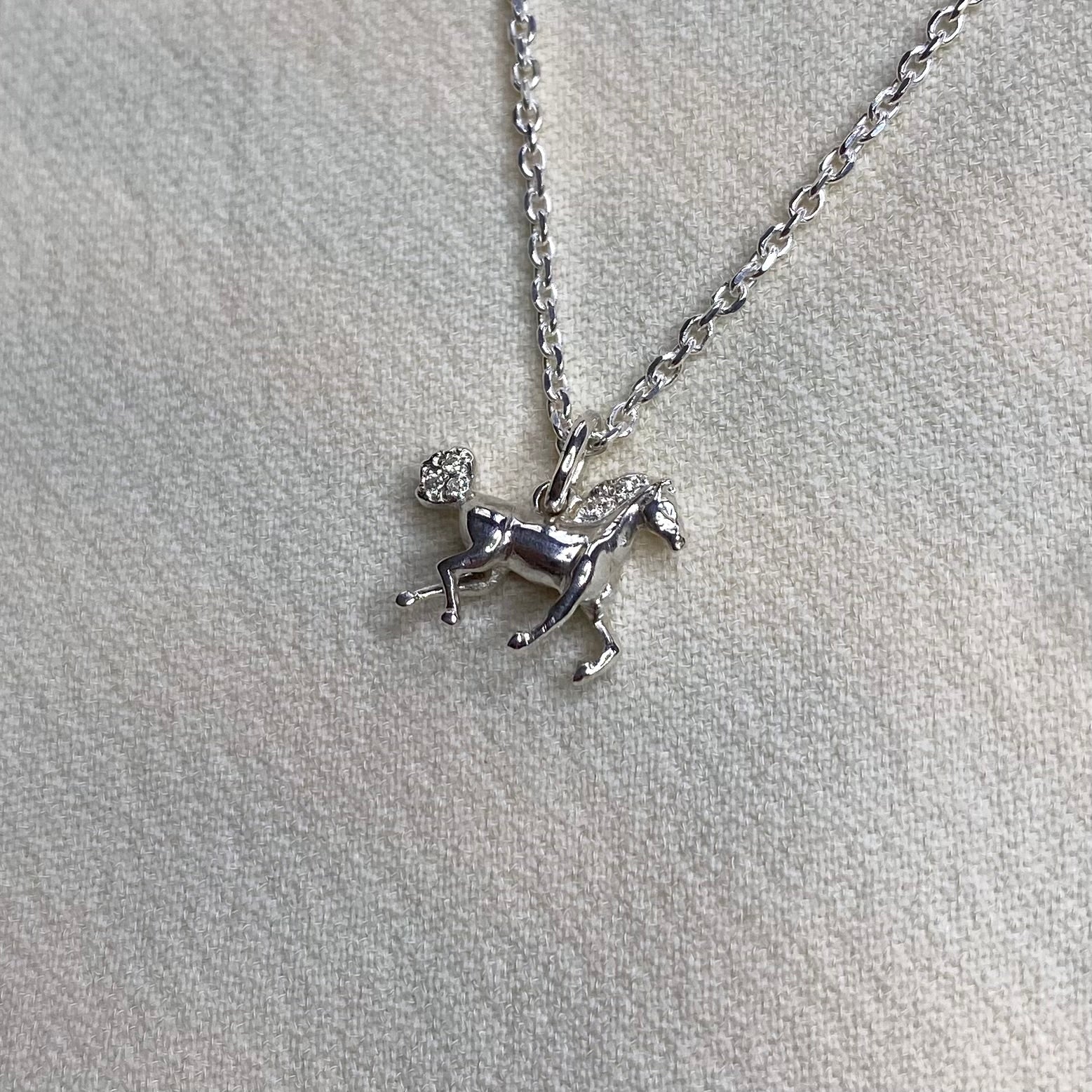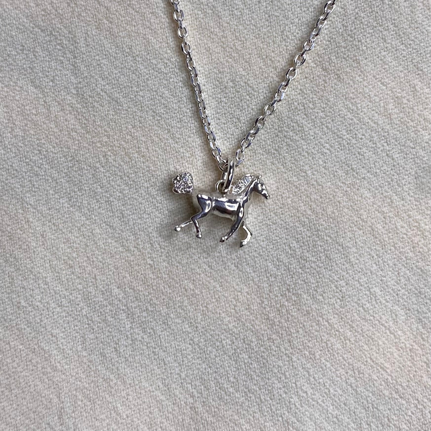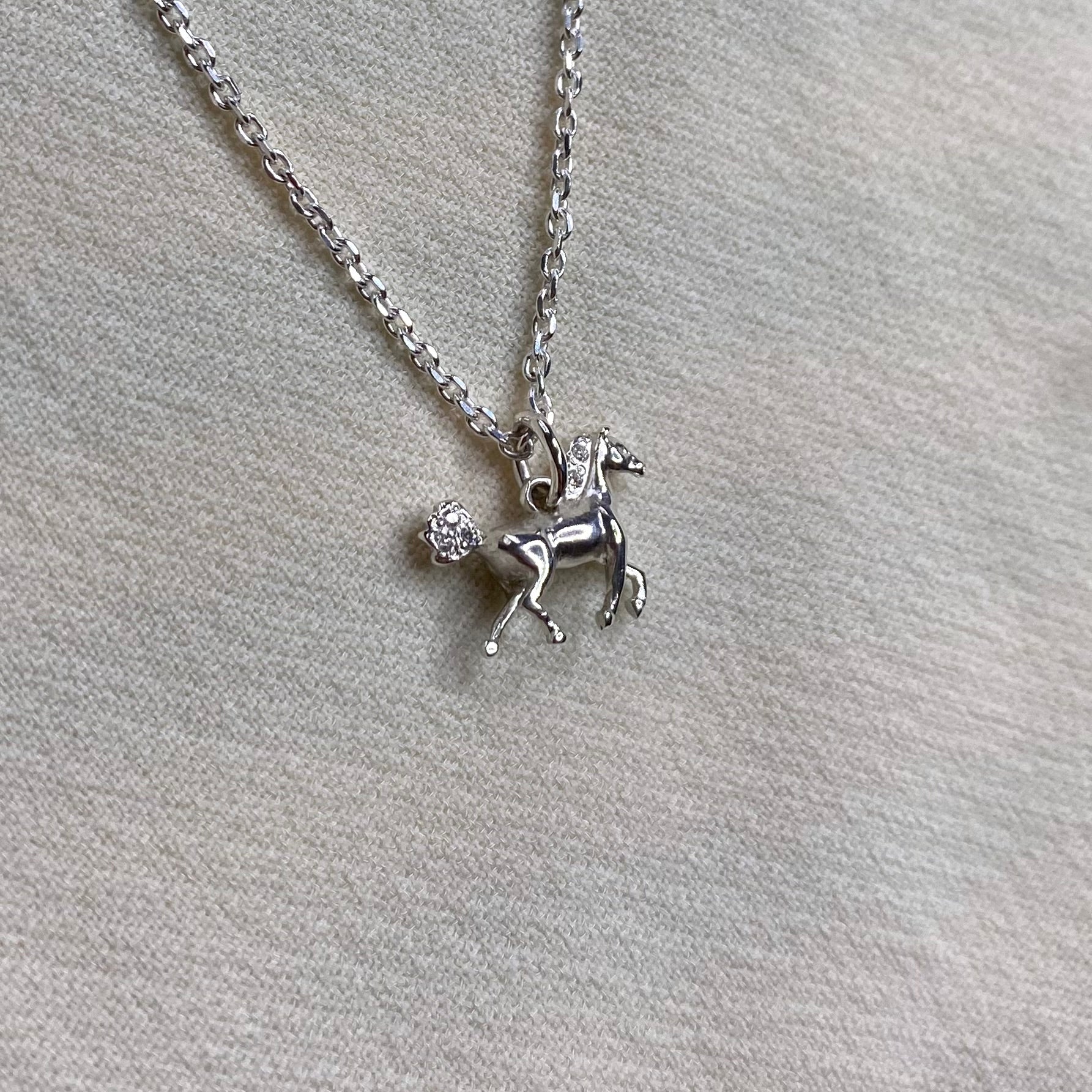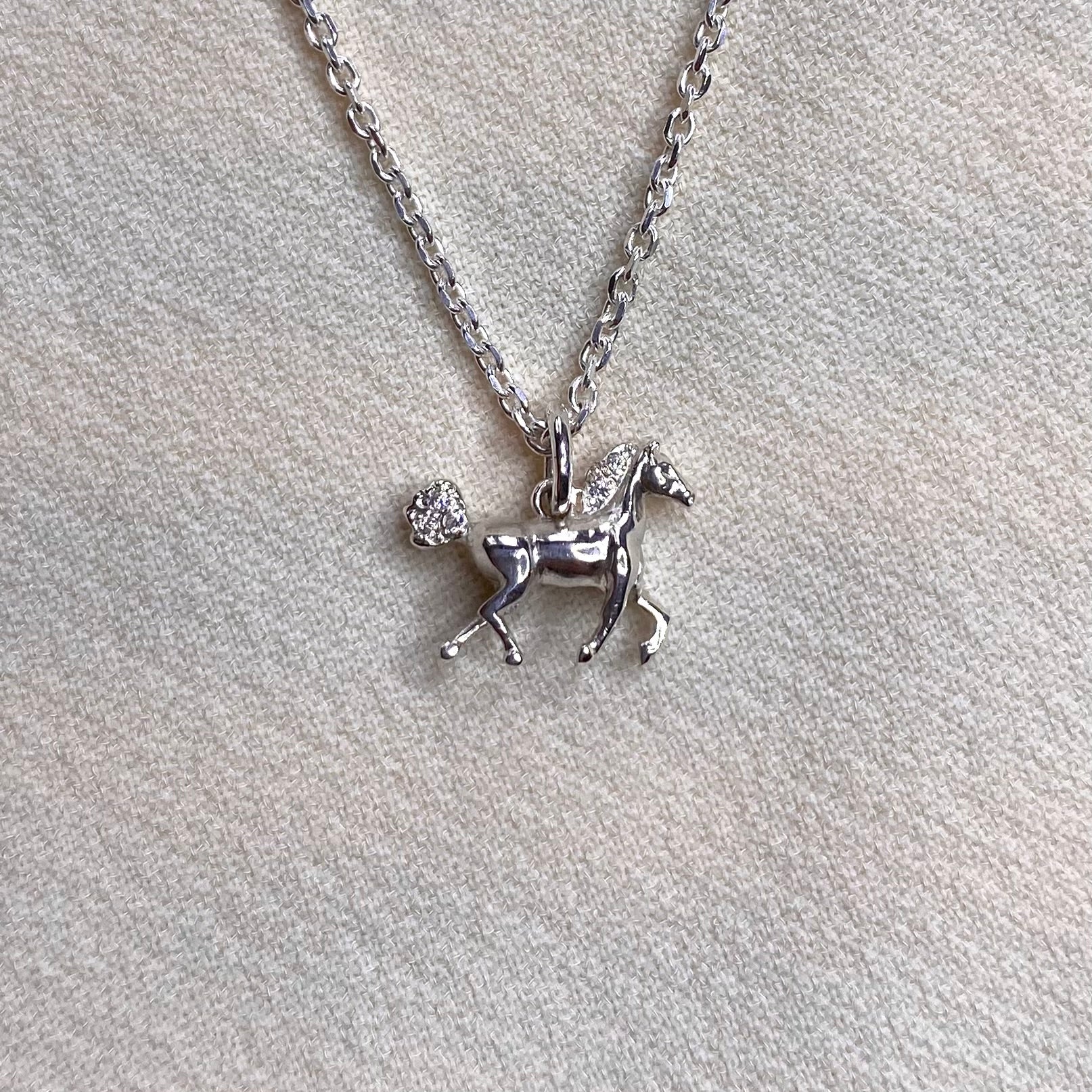 Il ciondolo con il cavallo é un gioiello scolpito interamente a mano e che vede come protagonista questo maestoso ed elegante animale.
